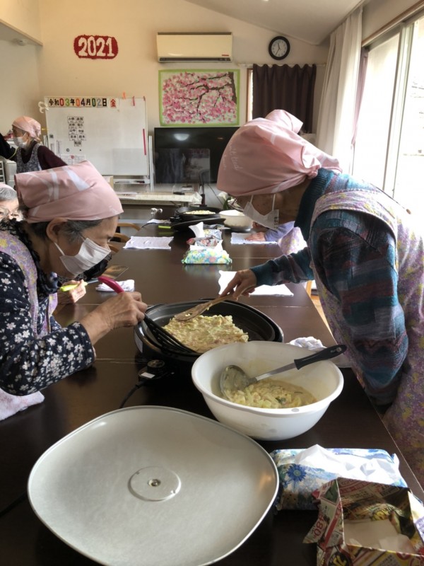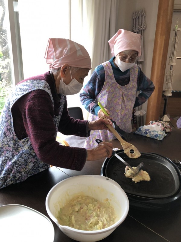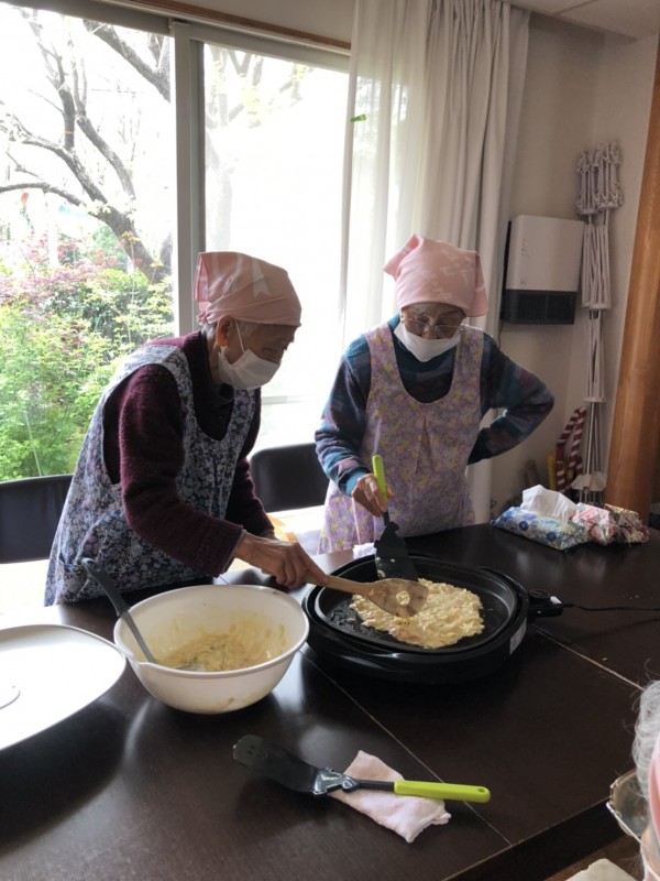 金曜日はお好み焼きを皆さんで焼いていただきました。