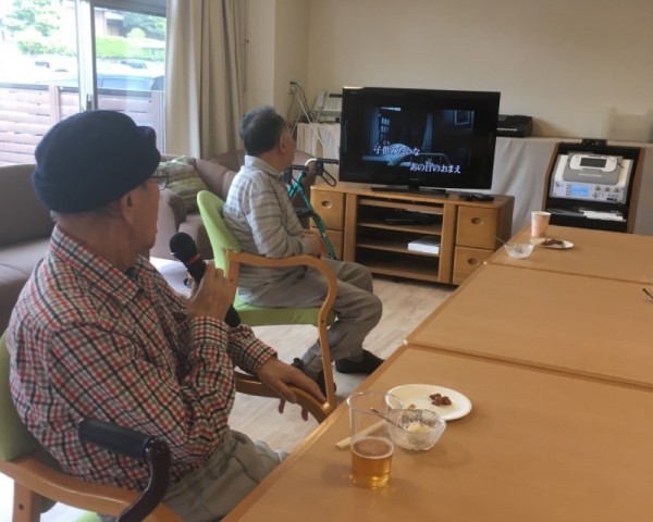 カラオケをしながら