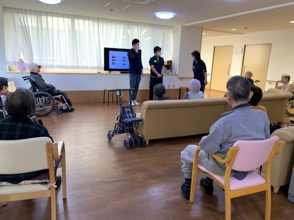 うちの若い子たちです!!!とネルソンくんと並んで入居者様にご紹介。