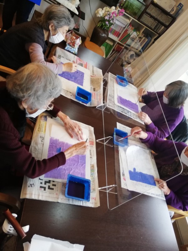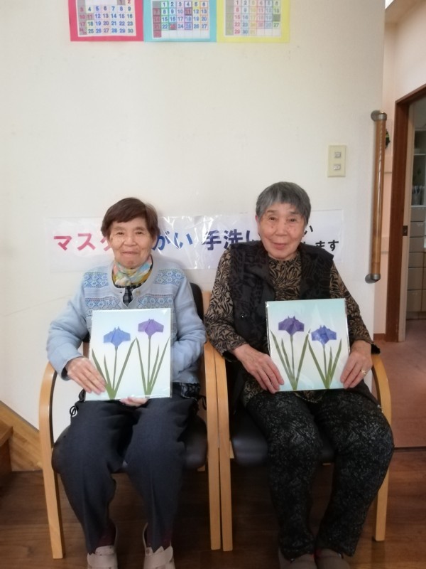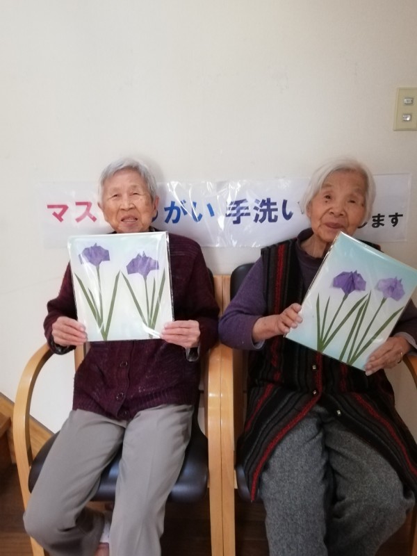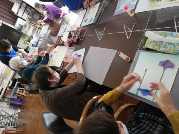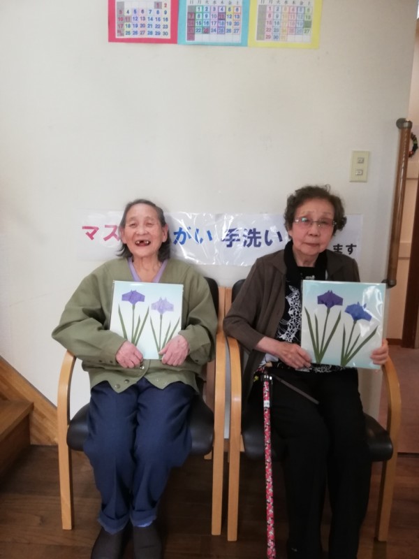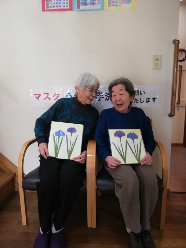 今月はあやめを色紙に貼っていただきます。