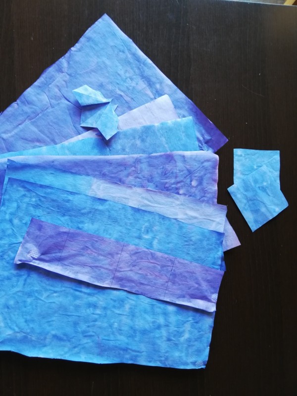 そして8㎝に切った障子紙を折っていただき、葉を貼って完成です。