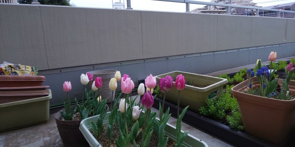 日差しが暖かくなり、ベランダのチューリップがキレイに咲きました!