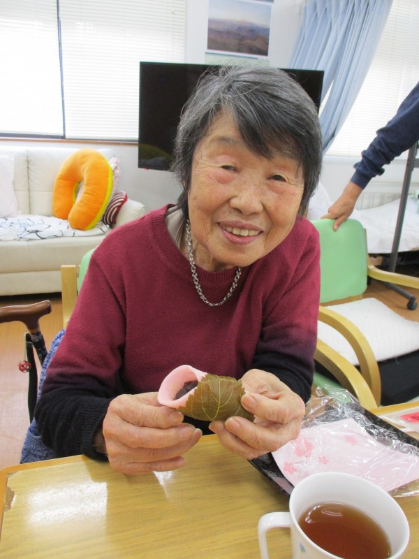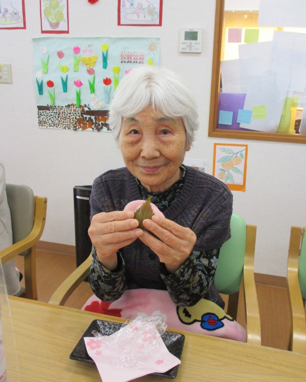 桜の葉とあんこをまいて、召し上がって頂きました♪