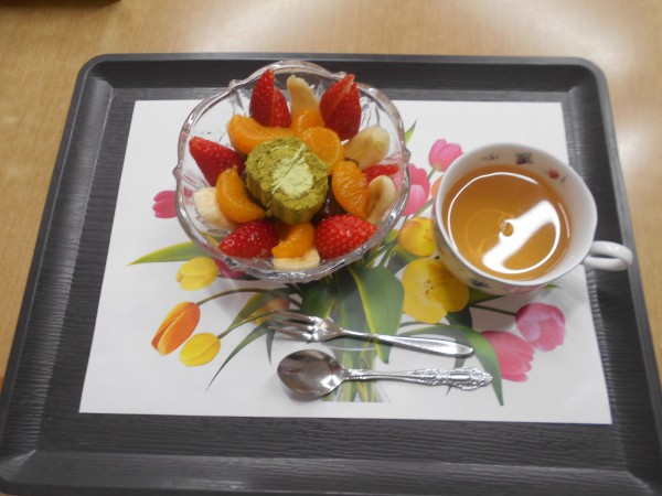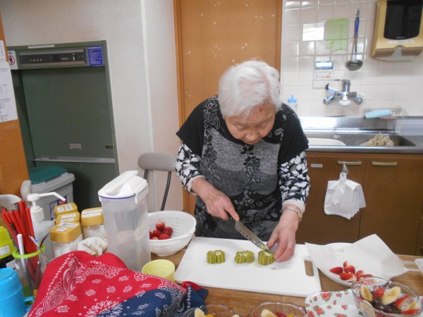 今月は、水羊羹のフルーツ添えを作るそうです、美味しく出来るかな?