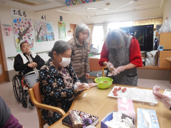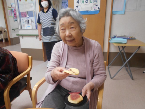 「綺麗なピンクのあんこだね」とお話ししながら♬