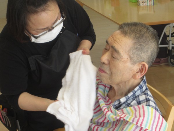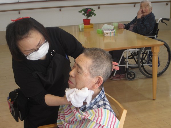 髭剃りをしてもらい、ご利用者様も大満足です\(^o^)/