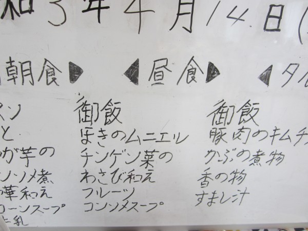 介護付有料老人ホームみんな家三橋6丁目の夕食は令和3年4月14日(水)曜日