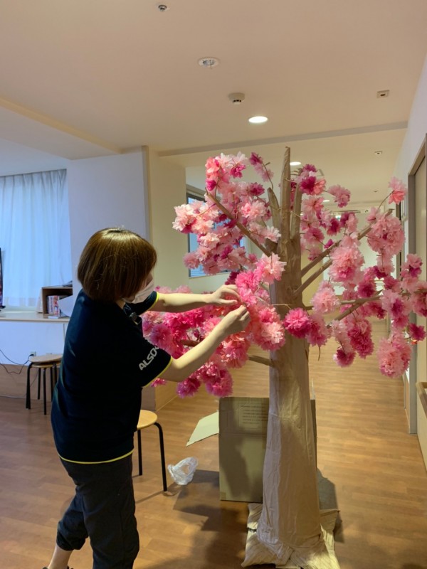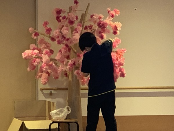 介護業務の合間をぬって、皆が咲かせてくれている桜の木。