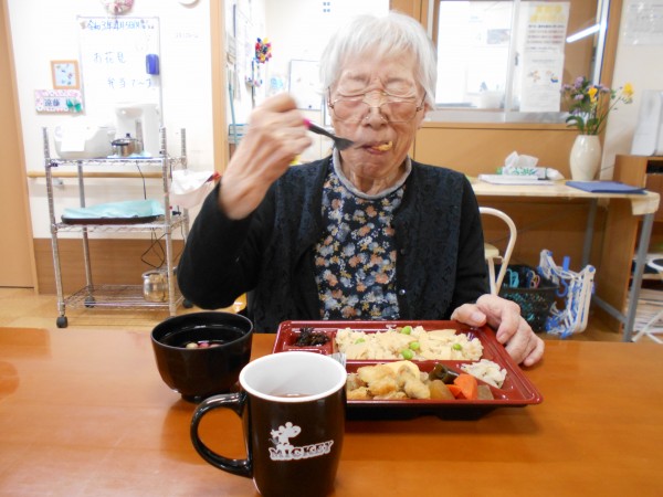 お昼は、桃フロア 桜フロアに分かれて、お花見弁当を召し上がりました(#^.^#)