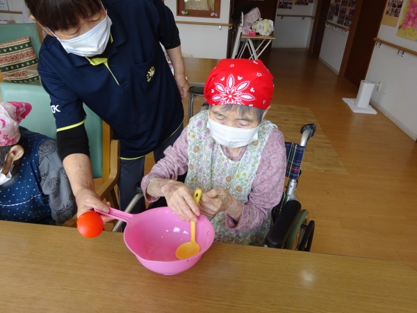 グループホームみんなの家・横浜今宿の介護ブログ 『レクリエーションでおやつ作りをしました』