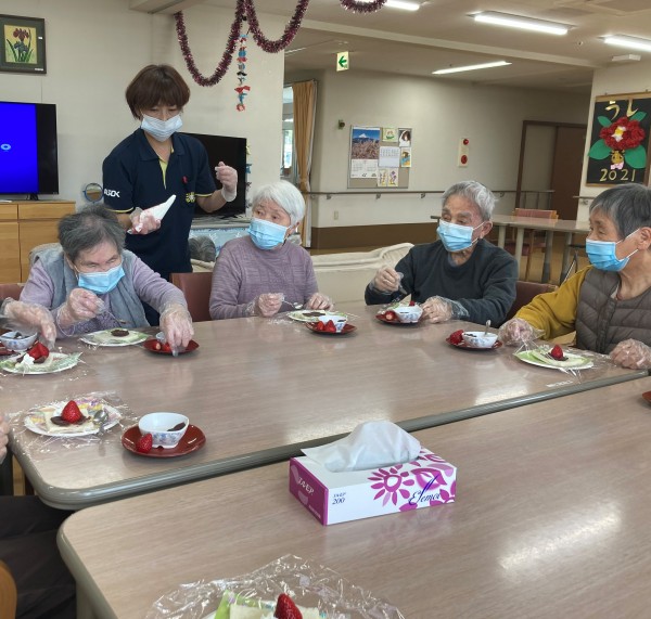 おっかなびっくり丸める方,具材の餡子や苺を先に食べようとしてしまう方,職員に完全に任せてしまって笑顔の方など、皆様それぞれでしたが,楽しんでいただきました。