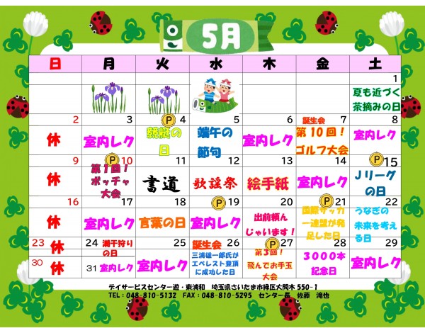 遊・東浦和の5月の予定表も完成しましたので、ぜひご覧ください!(^^)!