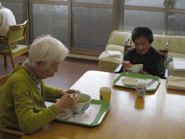 このジャガイモ私が切ったの?綺麗に切れたでしょう・・・ 夢中になって美味しく召し上がられていました。お味も良いわね!!久しぶりにおうどん食べた気がするね?? やはり皆様で作ると感動もひとしおのようです(笑)
