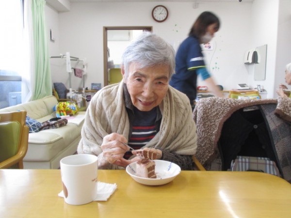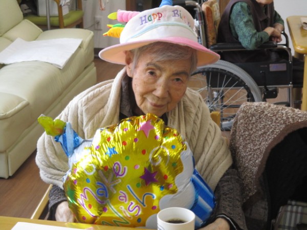 こんにちは!グループホームみんなの家・あきがせの介護ブログです。よろしくお願いいたします。今日は4/14お誕生会を行いました。おめでとうございます。いつまでも元気にお過ごしください。記念写真を撮りました。最高の笑顔です・・・ 歌を合唱しケーキを召し上がり楽しまれていました。