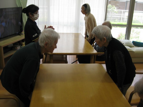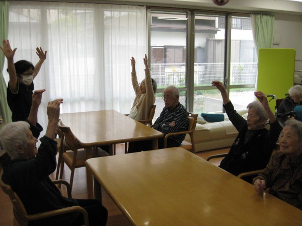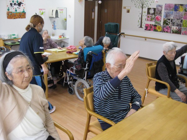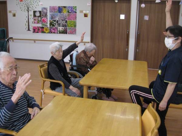 こんにちは!グループホームみんなの家・あきがせの介護ブログです。よろしくお願いいたします。ALSOKあんしんヨガで身体を動かしてみました。ゆっくりと呼吸を整えながら声を出したり手を上げたりと楽しんで行いました!!