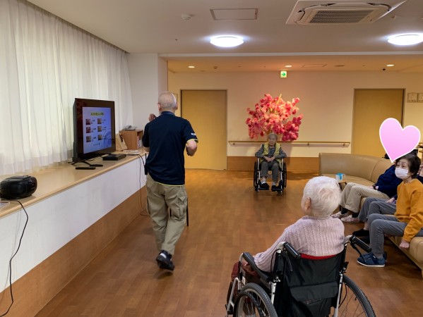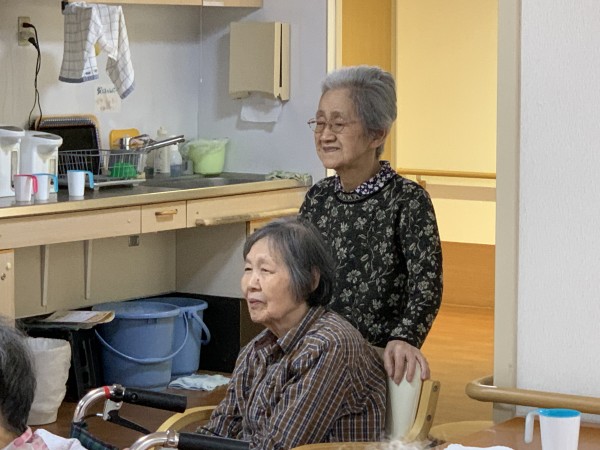久保ケアスタッフのステップを、微笑ましく見守ってくださる入居者様。