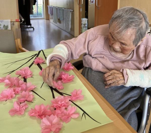 ソメイヨシノはすっかり散って、八重桜もそろそろ散り始めていますが、当ホームでは満開の桜がお部屋をにぎわせています。