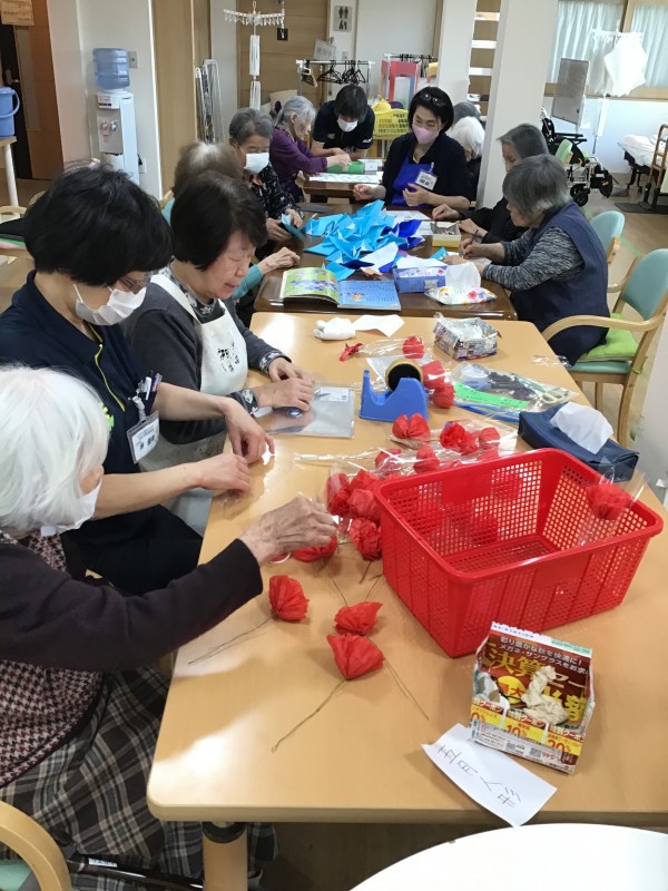 5月に向けた作品作りでカーネーションをお花紙で作成する事にしました!