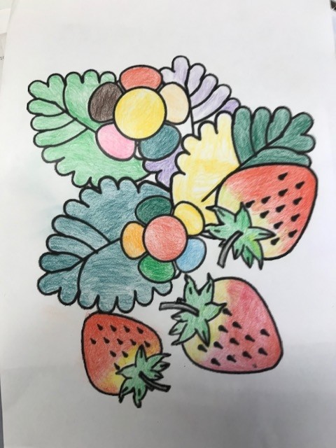 3階入居者のI様が「いつもお世話になっているのでどうぞ。」と仰り、くださった塗り絵作品です。