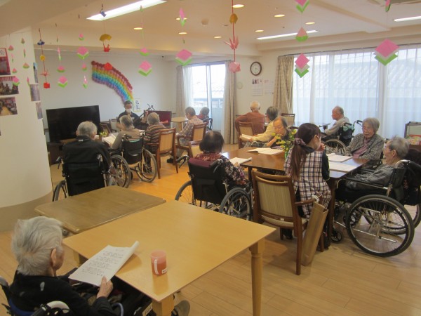 ご利用者様の皆様も三味線に合わせて大合唱♪大きな声で歌って健康に(*’ω’*)