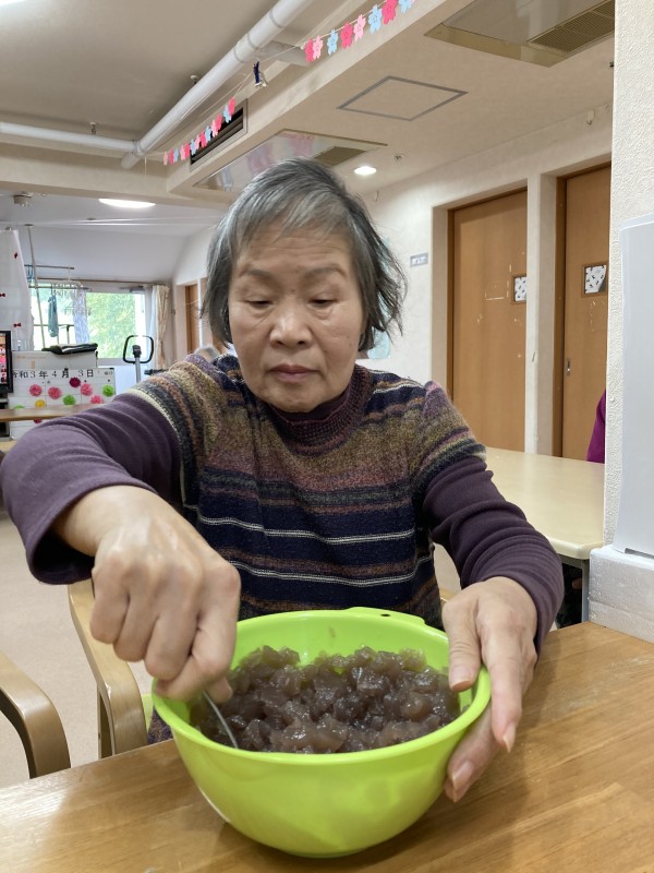 先日のおやつレクリエーションでお汁粉を