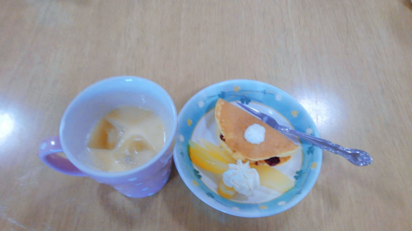 今月は両フロアとも備蓄してあったホットケーキミックスを使い、工夫をこらしていました。