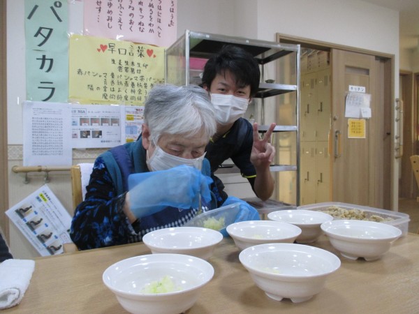 食事の盛り付けをお手伝いしていただく様子をお伝えします。