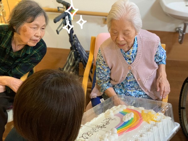 ブログの先には、大きなケーキと入居者様の笑顔もあったのです。