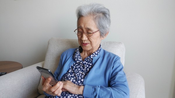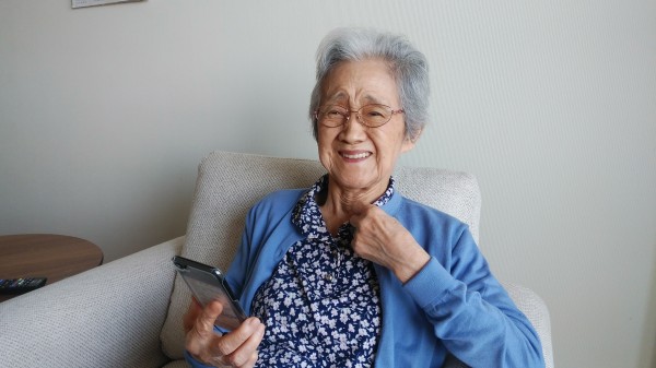 リモート面会は、会社のiPhoneを利用してご家族様とご入居者様をお繋ぎします。