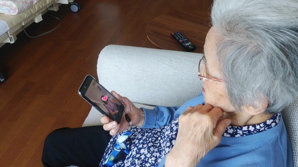 こちらのご入居者様、本日は娘様とリモート面会です。
