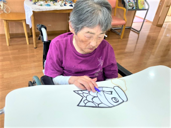今日は、2階フィリピン人職員の手作り鯉のぼりを作成しているご様子をご紹介しま~す。