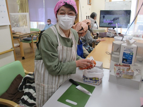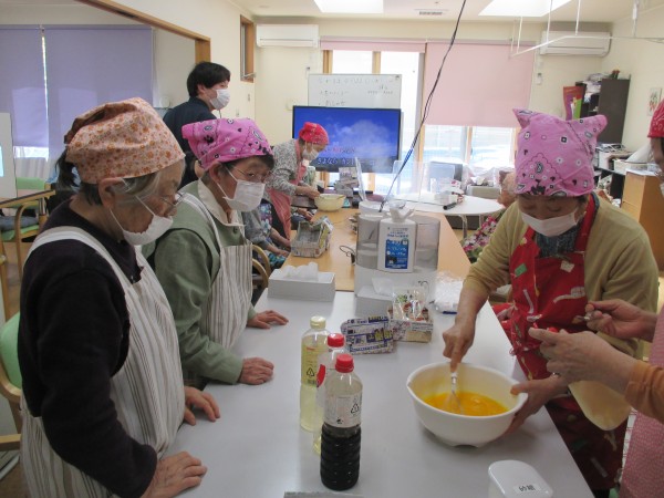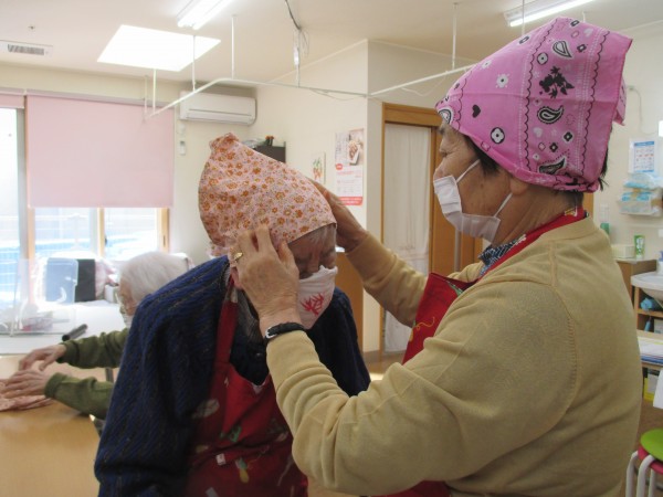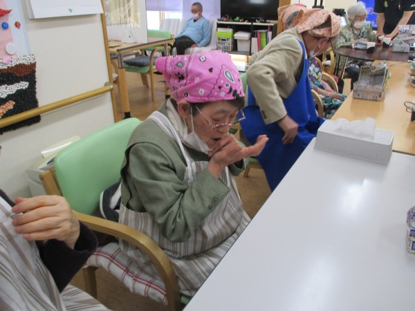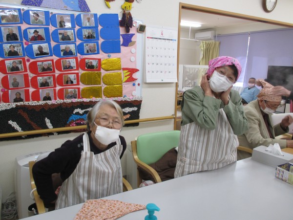 皆様手を洗い、消毒をし、テーブルを拭きエプロン三角巾をして準備万端でーーす