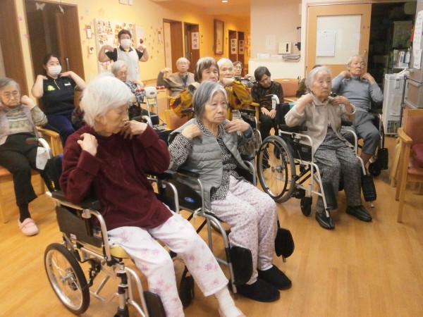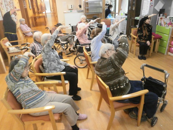 始まる前は「腰が痛い」と言っていた方も体操が始まると元気に参加されています(^^)