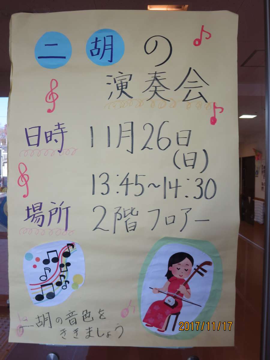 ご入居者様も、二胡の音色を楽しみにしておられます。