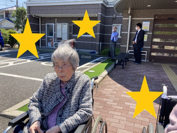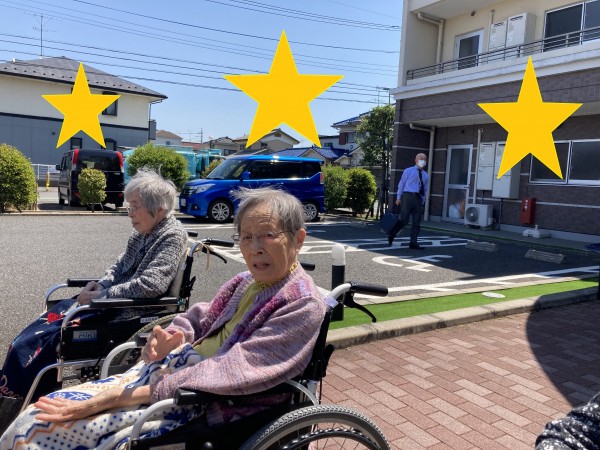ご利用者様の皆様で外気浴や日光浴のレクリエーションを行っています\(^o^)/