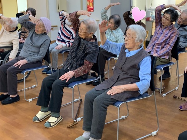 入居者様も、ゆったりと体操されております。