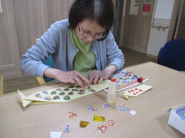 「うまく貼れないわ」「何色にする?」等会話も楽しそうです。