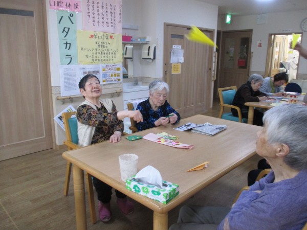 はじめはうまく飛ばせなかったご入居者様も、何回か挑戦しているとよく飛ぶようになってうれしそうでした (^-^)