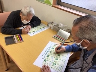 まず、利用者様に色塗りをしていただきました。