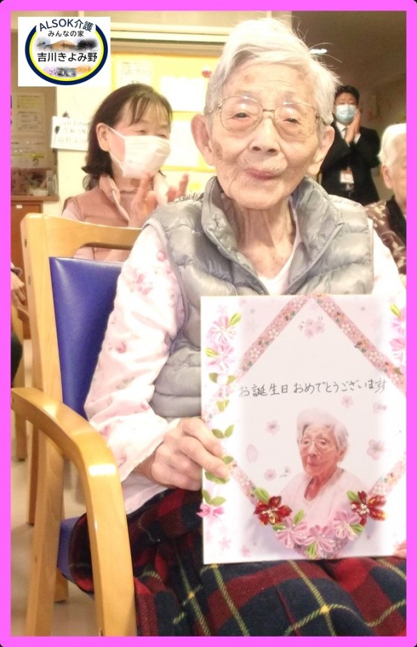 今月は2名の入居者様が誕生日を迎え色紙をプレゼントしました、