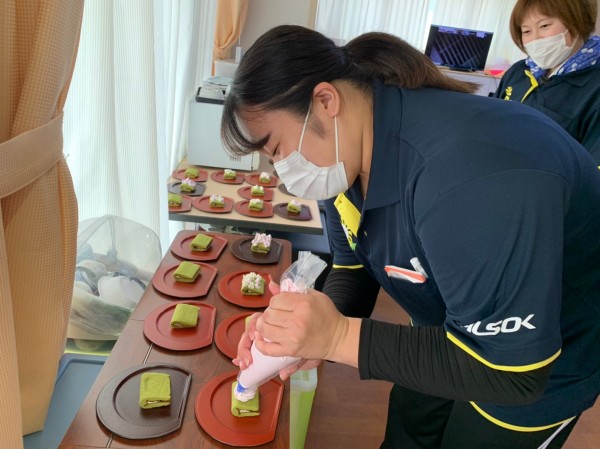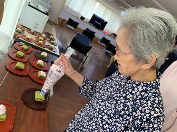 入居者様のオヤツに、デコレーションをしている様子をお届けしました!