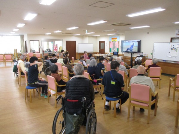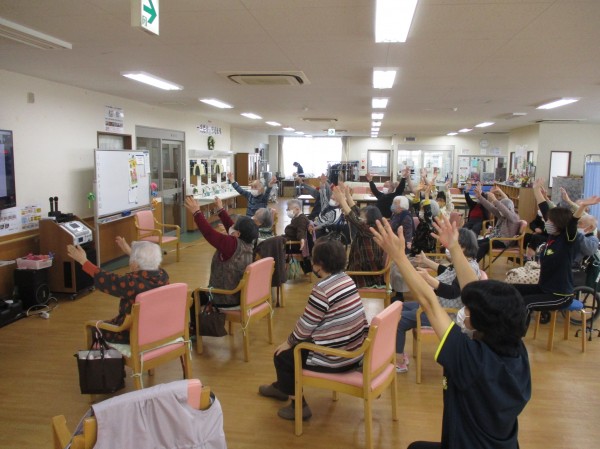 これを楽しみにされているご利用者様もいらっしゃり、ご利用者様方みんなで楽しく運動されています。