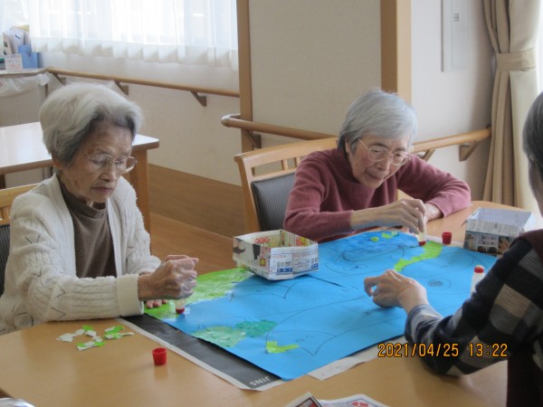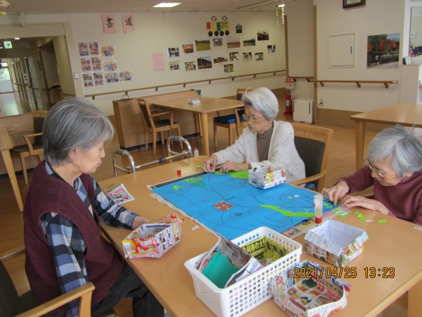 おぉ・・・ 貼り絵ですね!かなり大きな台紙ですよ。