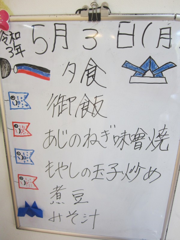 介護付有料老人ホームみんな家三橋6丁目の夕食は令和3年5月3日(月)曜日