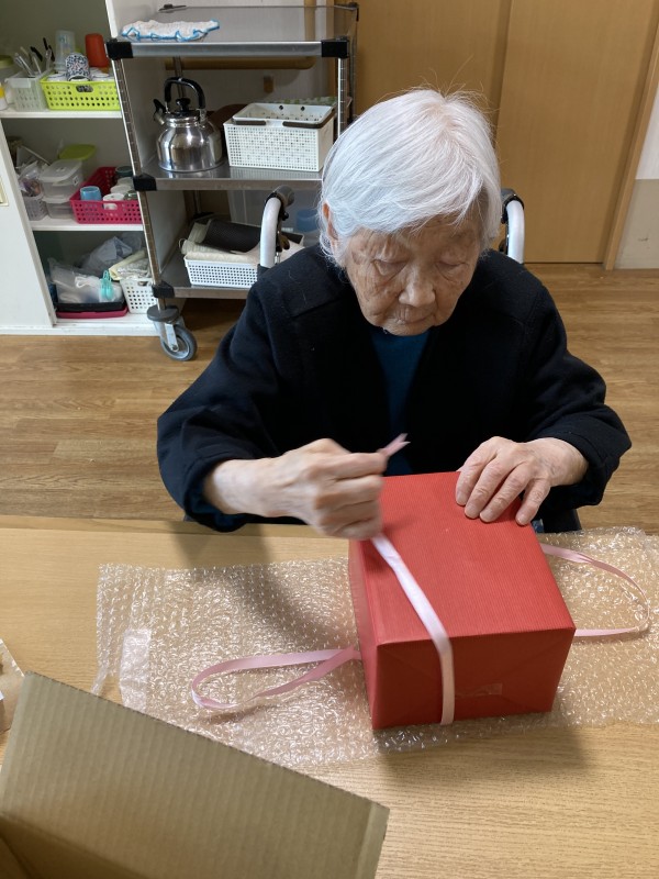 お誕生日当日に、ご家族様がお誕生日プレゼントを届けて下さいました。 さて、その中身は……
