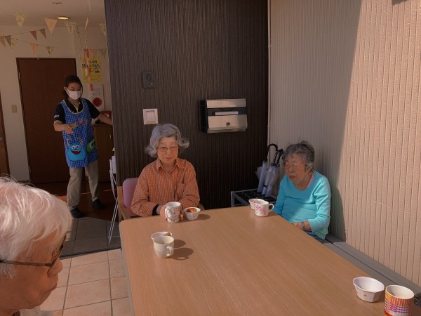 1階と2階の利用者様で、入れ替わりなどしながらおやつを食べました!
