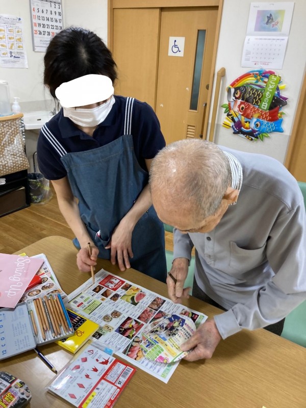 いつもと違う「大きな」、しかも「みんなの♪」こいのぼり作りの話が盛り上がったのは、4月22日でした。5月5日まであまり時間がありません。ですから、失敗は許されません(笑) そこで、「大きな」とはどれくらいの大きさがいい? 「みんなの♪」ってどうすればみんなの♪になる? などについて、入居されている皆様と意見を出し合い、出来上がりイメージをみんなで合わせるために、まずは試作品を作ってみることにしました。