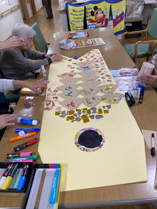 実際の製作現場では、おおそうか!そうか!と笑顔で見守って下さったAさん、積極的に参加していただいたIさん、そしてチラチラと気にしていただいたはにかみ屋のKさん、と男性のみなさんも、メンバーの一員として製作にたずさわっていただきました。