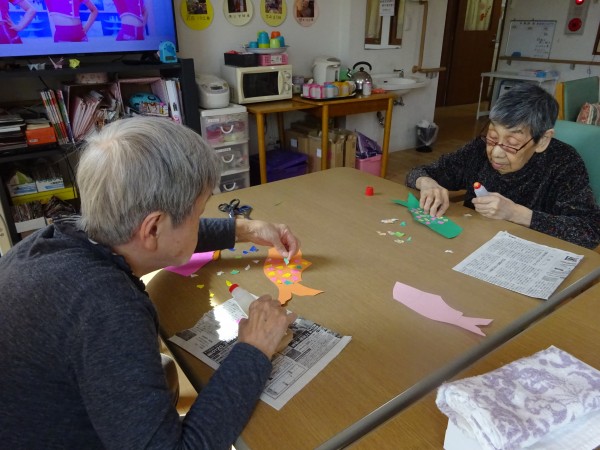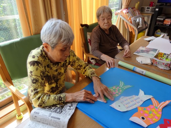 『こいのぼりの壁面作成』 ~グループホームみんなの家・横浜今宿の介護ブログ~