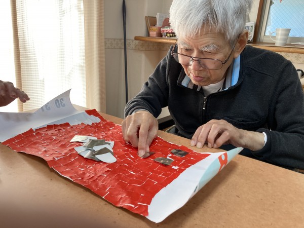 と言いながら折り紙を切っていた利用者様も、貼り始めると「綺麗だねー」「良いもんだねー」と笑顔。